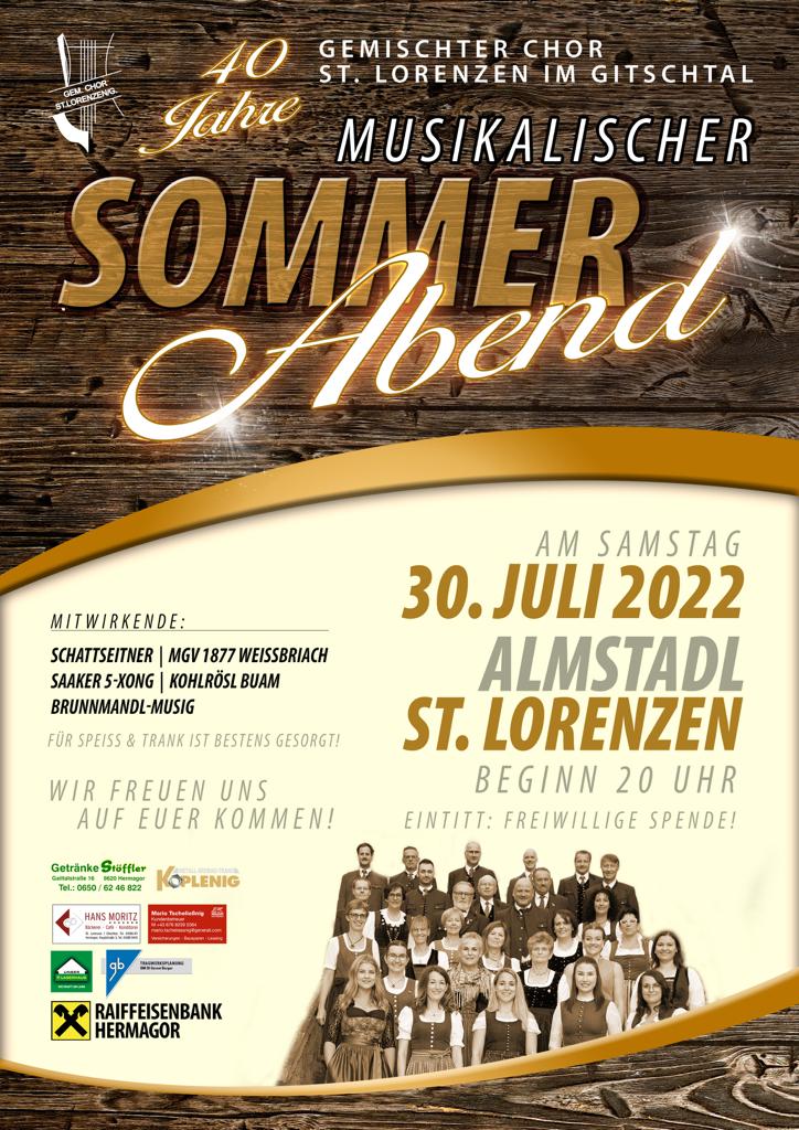 Am Samstag, den 30. Juli 2022 im Almstadl, St.Lorenzen. Beginn 20 Uhr + Entritt: Freiwillige Spende!