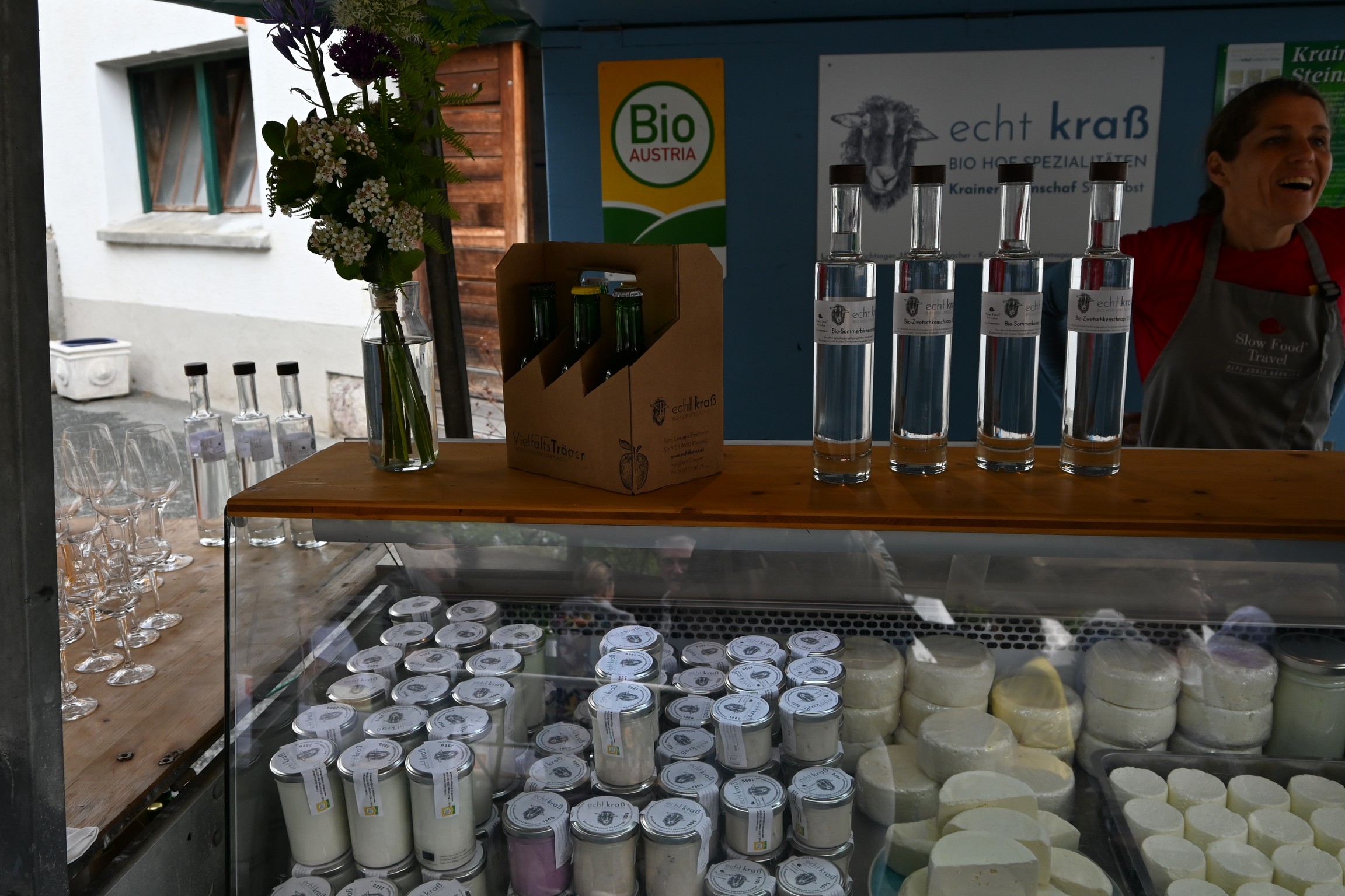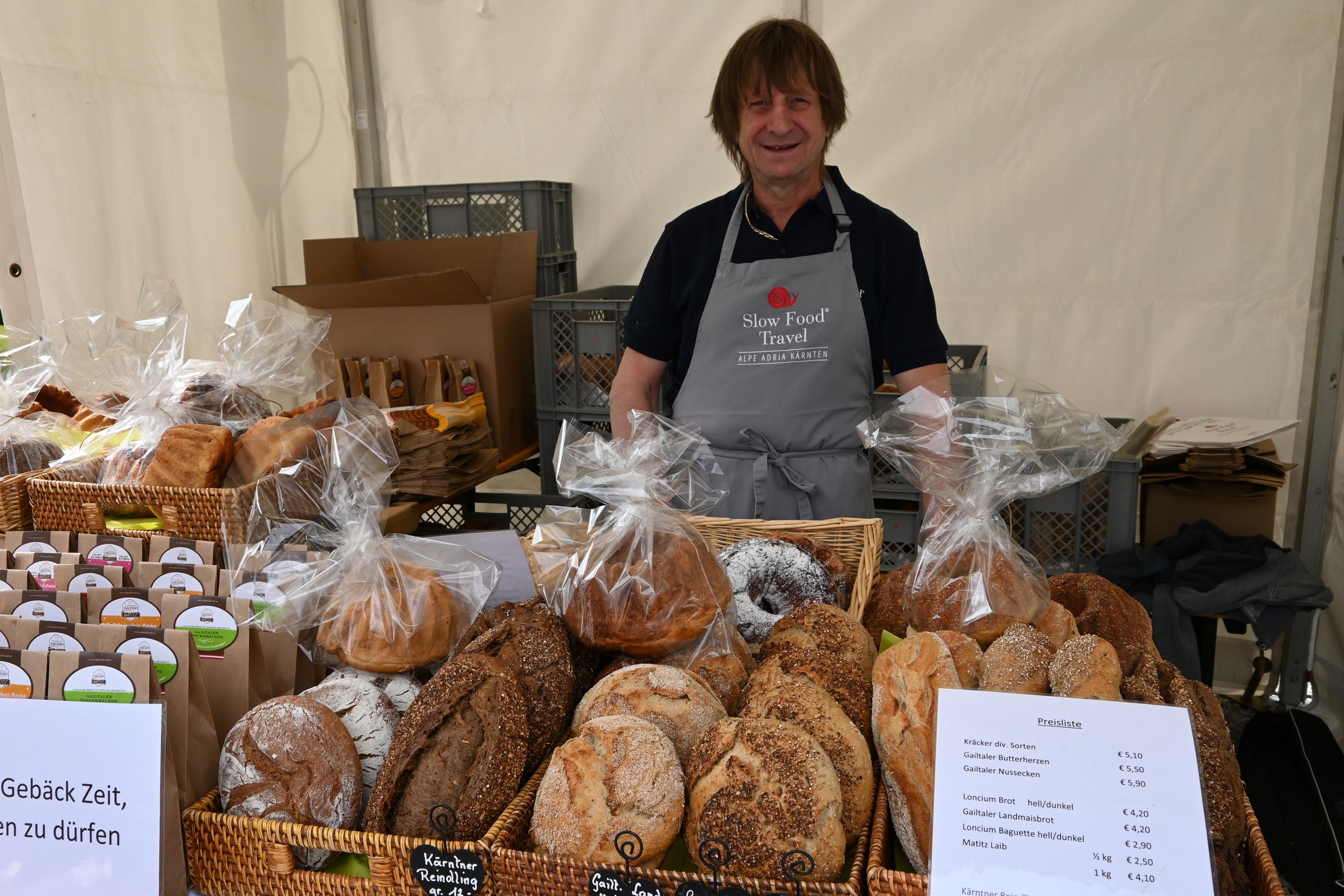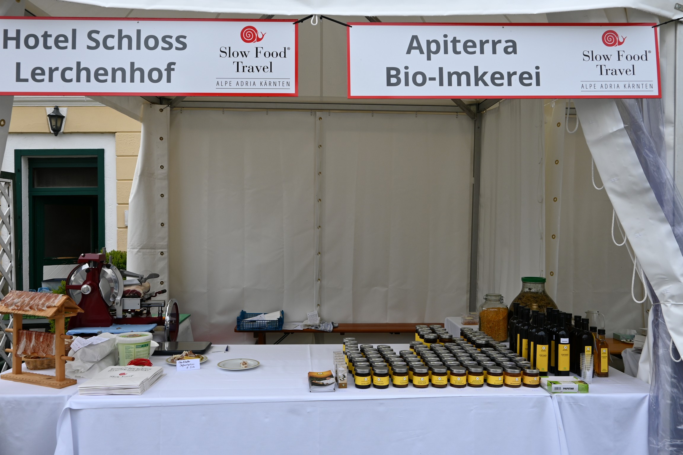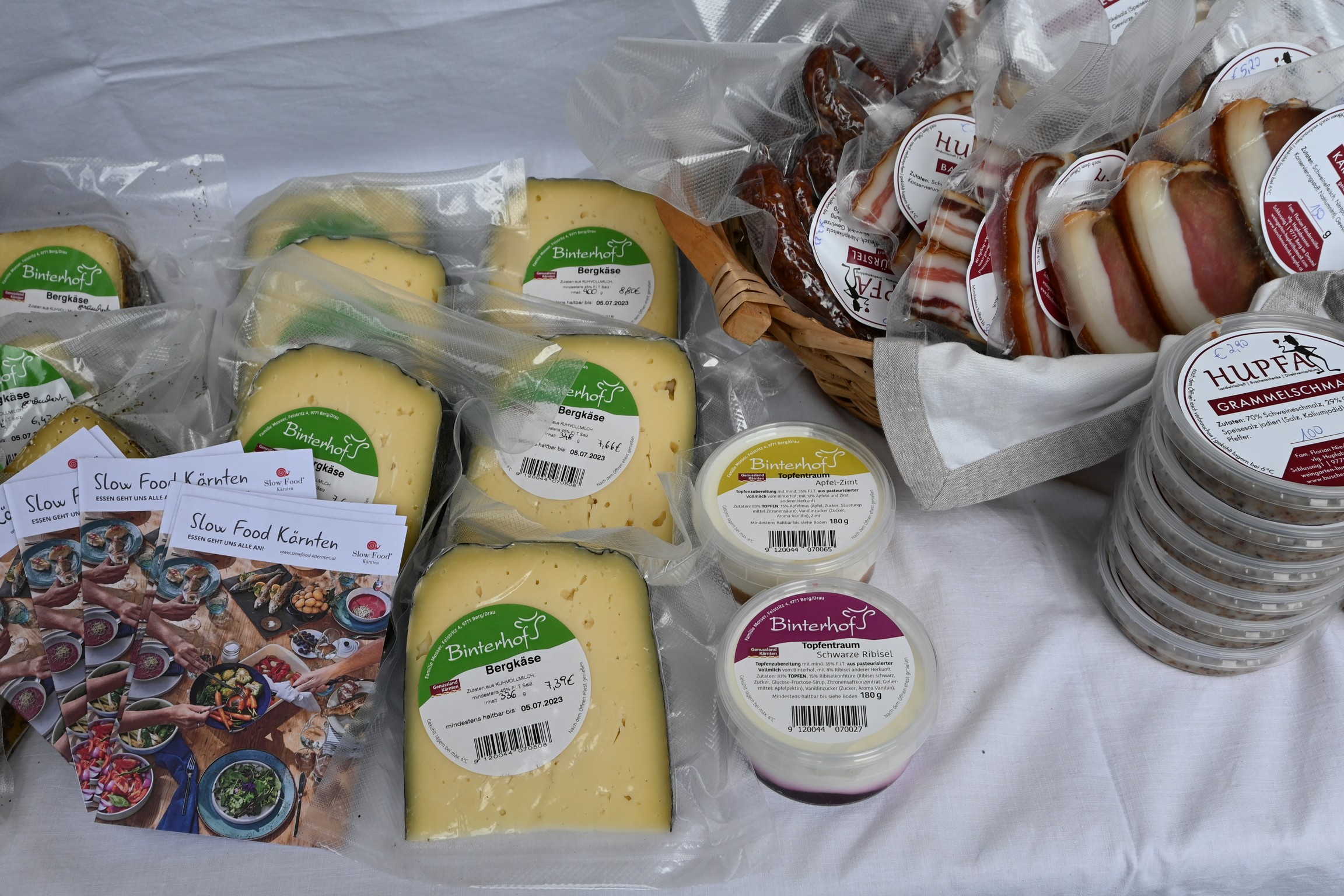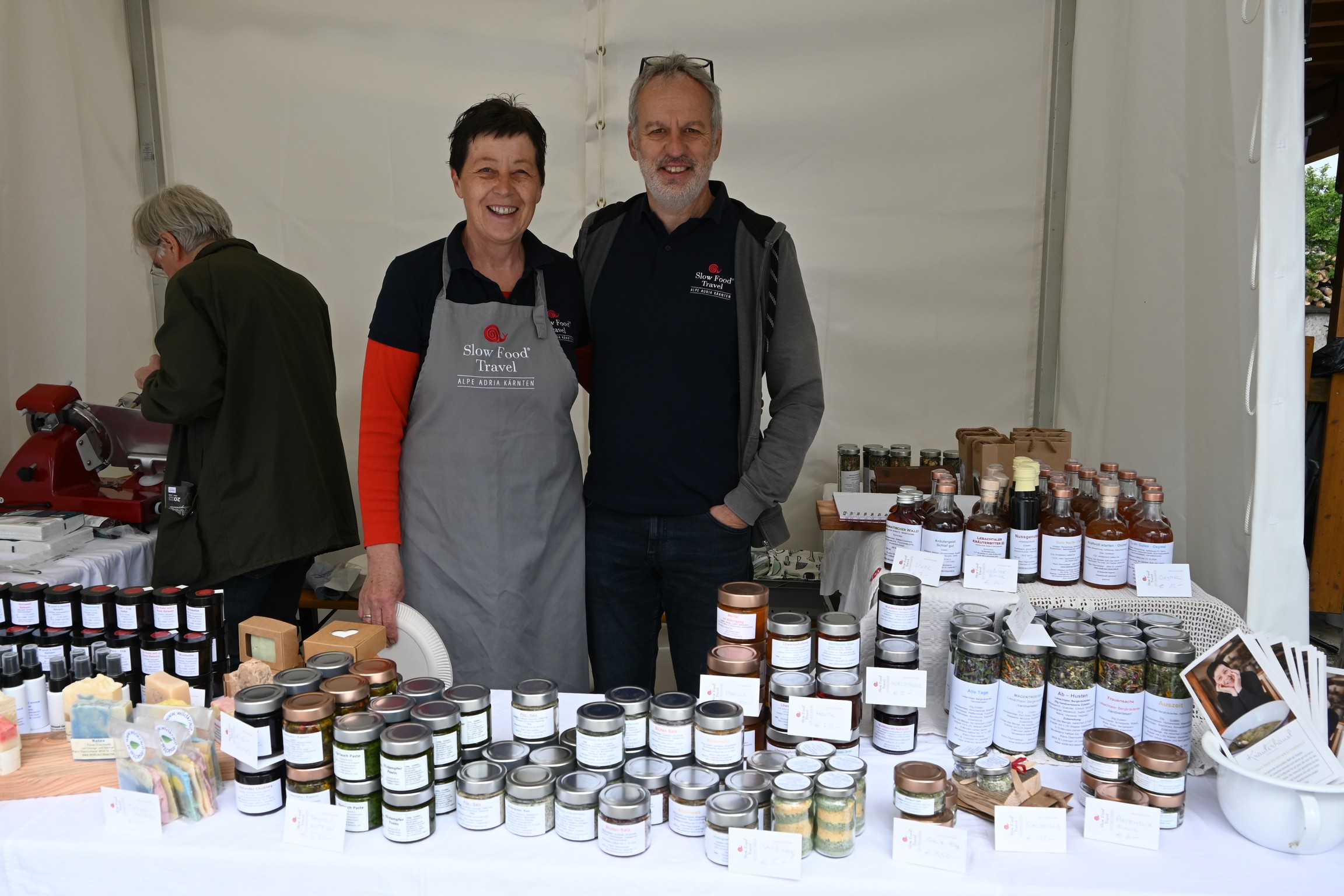 Gleichzeitig bot die Veranstaltung auch eine Bühne, auf der sich Slow Food Produzent:innen austauschten, die sich dies- und jenseits der Karnischen Alpen der Herstellung und Verarbeitung von guten und sauberen Lebensmitteln zu fairen Preisen verschrieben haben. Von frischen Kräutern, Gemüse, Brot, Honig über hausgemachten Speck und Käse bis hin zu exquisiten Schafspezialitäten – vielfach wurde diese Gelegenheit genützt, um die Einkaufstaschen mit köstlichen Slow Food-Produkten zu füllen.