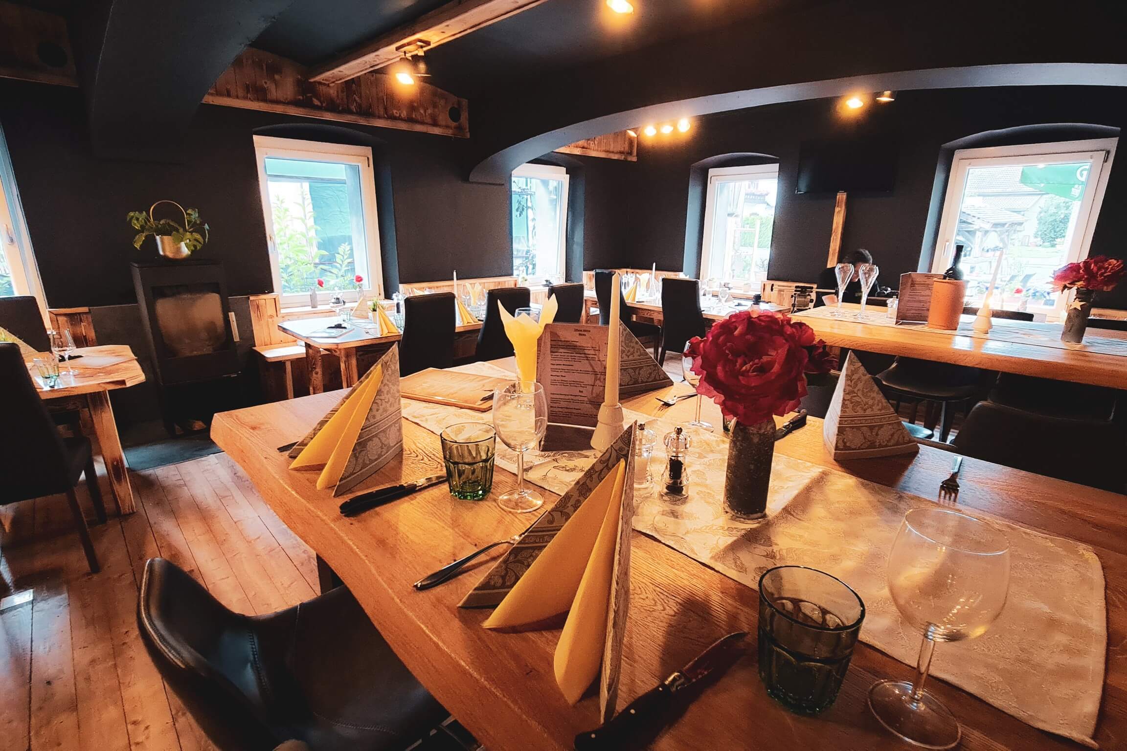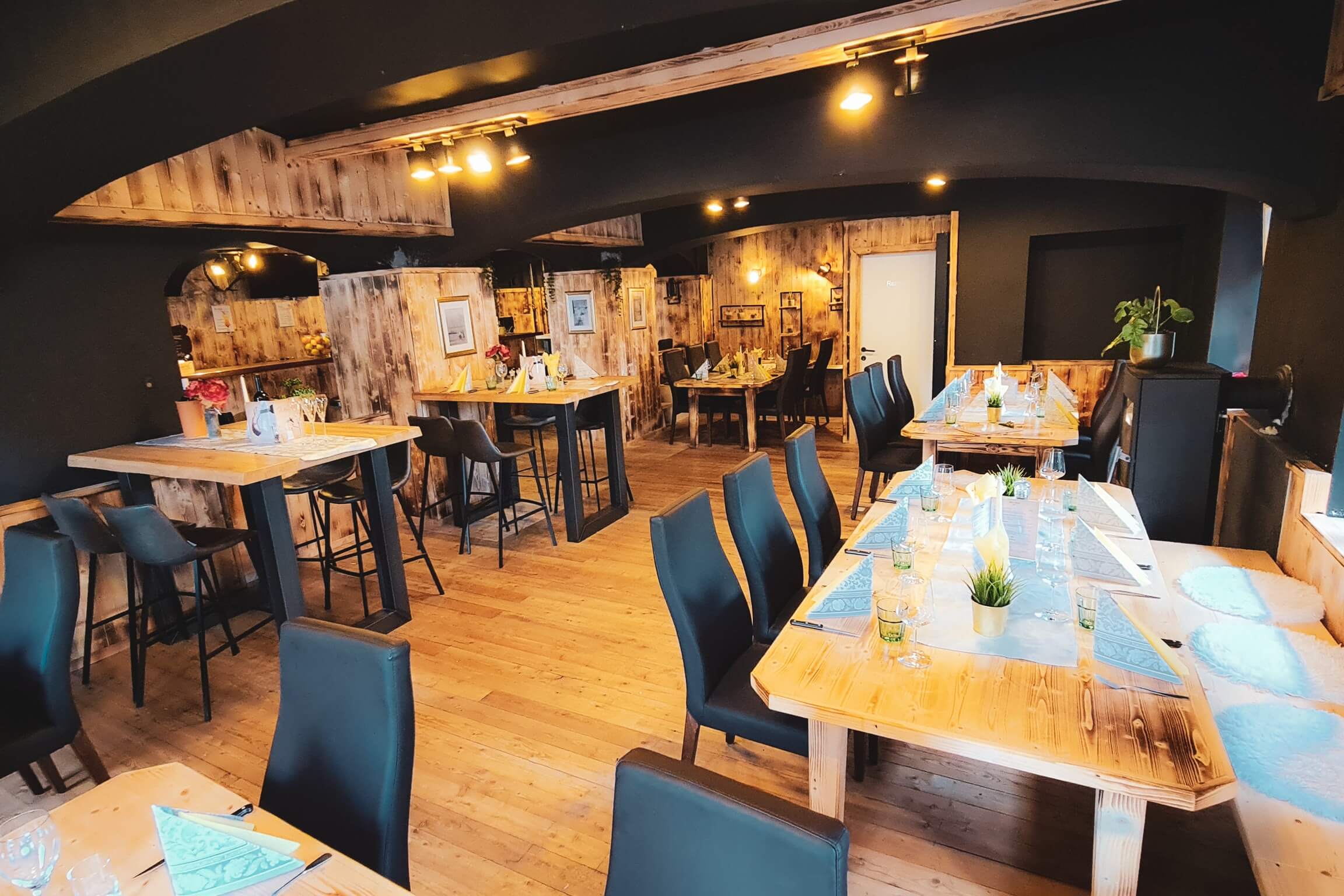 Der neu gestaltete Innenbereich bietet ein gemütliches Ambiente mit rustikalen – modernen Elementen. In den Räumlichkeiten können Feierlichkeiten, wie Geburtstage, Firmenfeiern oder auch Weihnachtsfeiern, für bis zu 40 Personen abgehalten werden. Das Wunschmenü wird dabei persönlich mit den Gästen zusammengestellt.