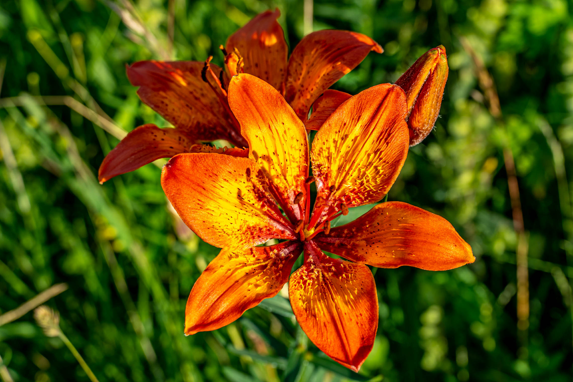 Die Feuerlilie, auch Wilde Gilgen oder Donnerblume genannt kann bis zu einen Meter hoch werden. Wenn Sie den Blick von den ein bis fünf großen, gelb-rot bis leiche rot gefärbten Blüten lassen können und ihn weiter nach unten richten, werden Ihnen die erbsengroßen Kügelchen zwischen Laubblatt und Stängeln auffallen. Diese Kügelchen sind Teil der Vermehrungsstrategie der Feuerlilie. Auch Insekten sind ganz bezaubert von der Lilie und sind ganz Feuer und Flamme, die leuchtenden Blüten zu bestäuben.