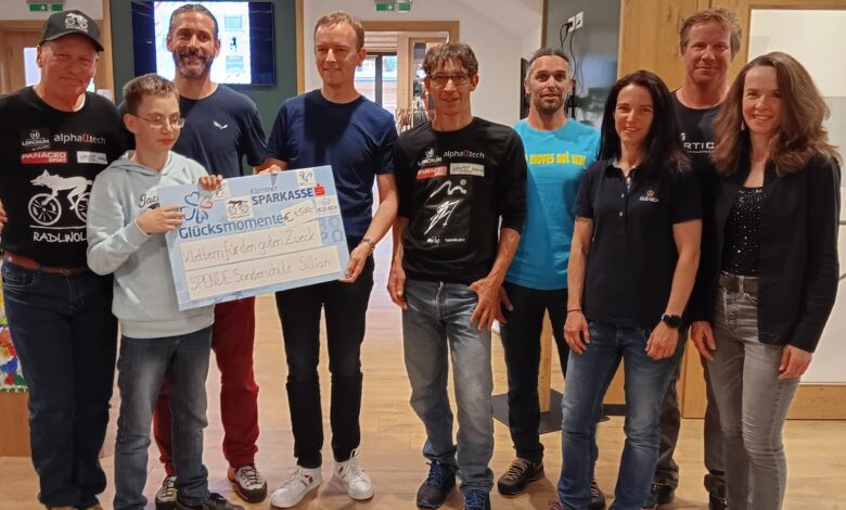Im Anschluss der Siegerehrung konnte an Schulleiter der Georg-Großlercher-Schule, Allgemeine Sonderschule Sillian, Markus Kozubowski ein Spendenbetrag von € 1500.- ( € 850.- vom Klettern für den guten Zweck und € 650.- Aufstockung durch Radlwolf und Michi Kurz aus Spendengeldern ihrer Veranstaltung „Bewegung für den guten Zweck“) übergeben werden.