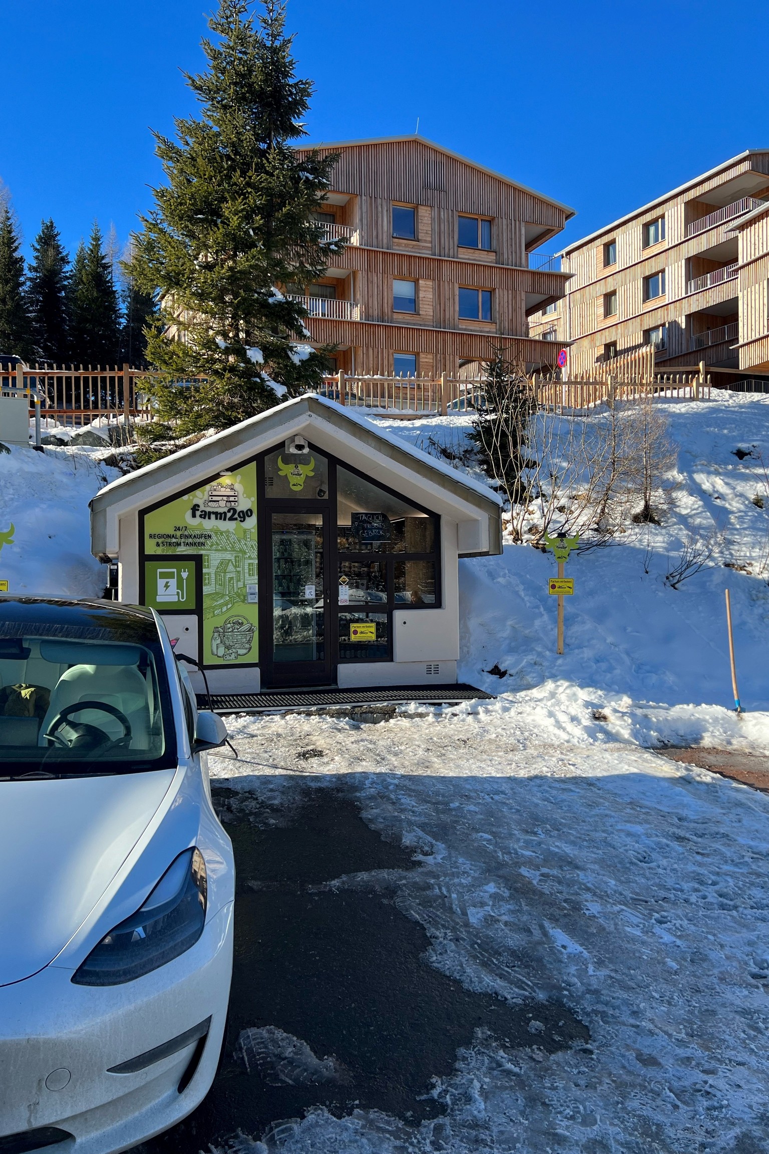 Farm2go – ein ehemaliges Mini-Postamt am Nassfeld wurde zu einem regionalen Selbstbedienungsladen und einer E-Tankstelle umgewandelt. Dieses Konzept ermöglicht es, regionale Produkte und elektrische Energie 24/7 zu erwerben. Für Nico Groschacher, Gründer von Farm2go, ist es wichtig, Touristen und Einheimischen jederzeit Zugang zu hochwertigen Produkten aus der Region zu bieten. „Unser Sortiment stammt ausschließlich aus Kärnten und dem Gailtal und verkörpert das Prinzip des „Slow Food to go“, so Nico Groschacher.