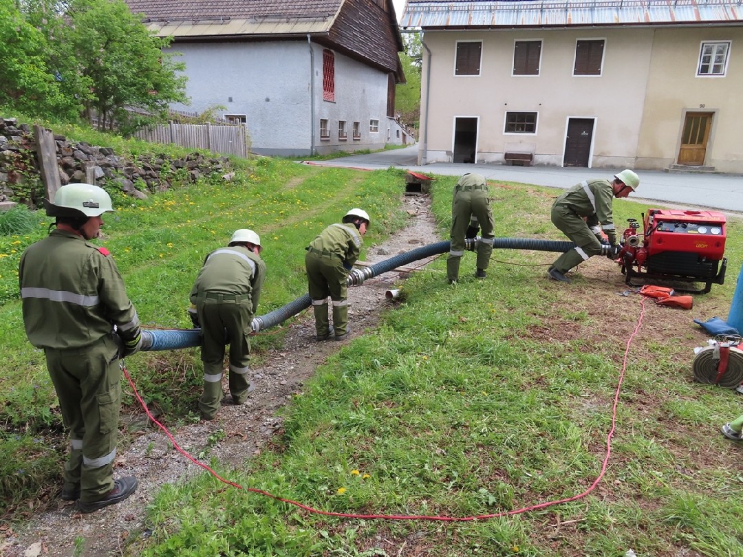 Im praktischen Teil wurde das erlernte Wissen unter den Hauptzielen des sicheren und zielorientierten Arbeitens umgesetzt. Die praktische Ausbildung umfasste unter anderem die Grundlagen der Löschgruppe, der Technischen Gruppe, der Tanklöschgruppe, das richtige Aufstellen von Leitern und Beleuchtungseinrichtungen, den Einsatz von elektrischen Tauchpumpen und die richtige Handhabung von Handfeuerlöschern. Bei der praktischen Übung mit Handfeuerlöschern konnten die jungen Feuerwehrleute echte Flammen löschen und die erlernte Theorie in die Praxis umsetzen. Ein herzlicher Dank gebührt an dieser Stelle der Firma Zerza Flüssig Gas GmbH, welche die gasbefeuerte Handfeuerlöscher-Übungsanlage kostenlos zur Verfügung stellte.
