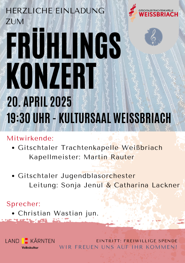 Es ist bald wieder soweit: Die Gitschtaler Trachtenkapelle Weißbriach veranstaltet ihr alljährliches Frühlingskonzert!