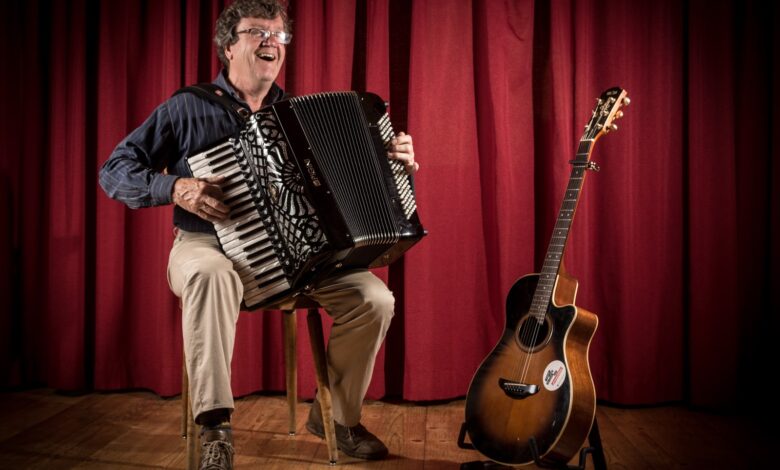 Seine Texte verstärkt er mit Akkordeon und Gitarre, wobei er mitunter folgende Lieder zum Besten geben wird:
