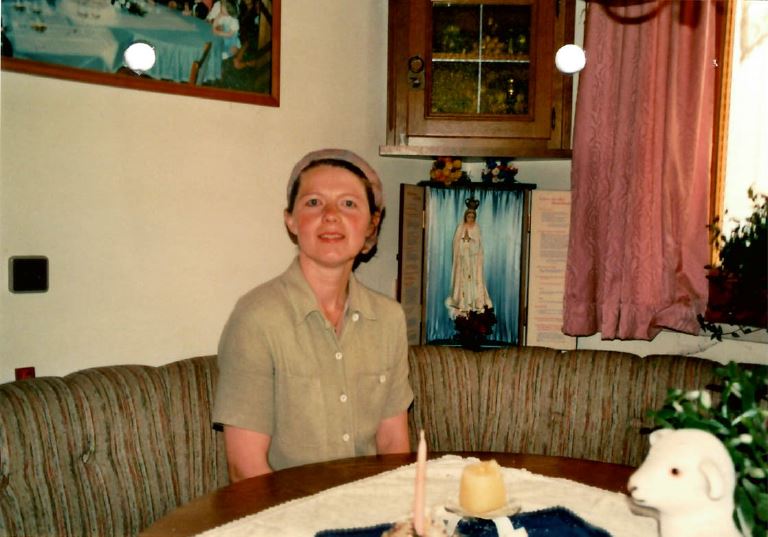 Maria Floriana PLÖSSNIG ist ca. 170 cm groß, mittlere Statur und hat lange graue Haare.