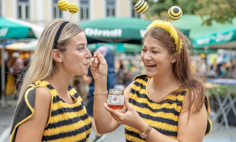 Der feierliche Festakt zum 20. Jubiläum, sowie die Prämierung des Jubiläums-Honigs findet am Samstag, 12. August, ab 10.30 statt. Festbesucher können außerdem ihre eigene Honigkostprobe abfüllen, sich an der Honigschleuder versuchen und das Gewicht eines Bienenschwarms schätzen – also mit allen Sinnen ins Thema eintauchen. Dank dieser Programmpunkte sind die Bienen und ihre Köstlichkeiten an diesem Wochenende in aller Munde und es wird natürlich auch fleißig eingekauft.