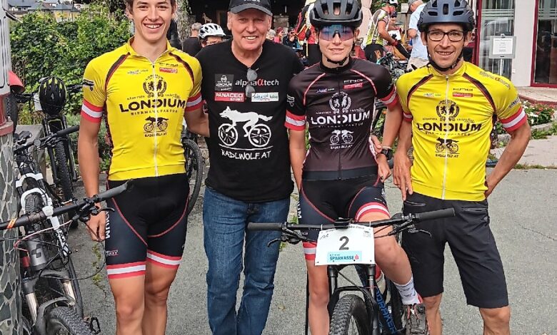 Radlwolf und Michi Kurz mit den Kindern von Michi, li. Nils und 3.v.li. die frisch gebackene österreichische Meisterin im Schibergsteigen Nele Kurz © Radlwolf