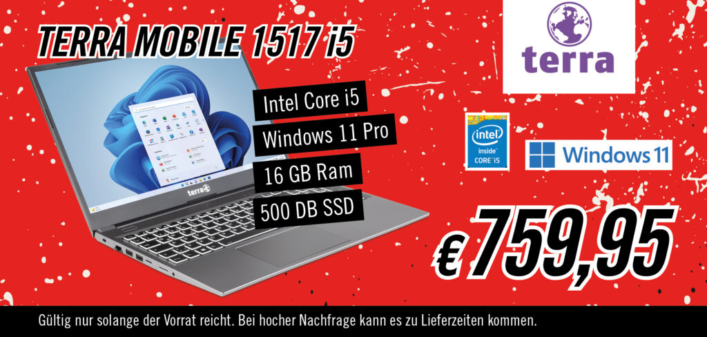 Die Angebote gelten, wie üblich im Hardwarebereich, nur solange der Vorrat reicht. Aufgrund der stark gestiegenen Nachfrage kann es vereinzelt zu Lieferzeiten kommen.
