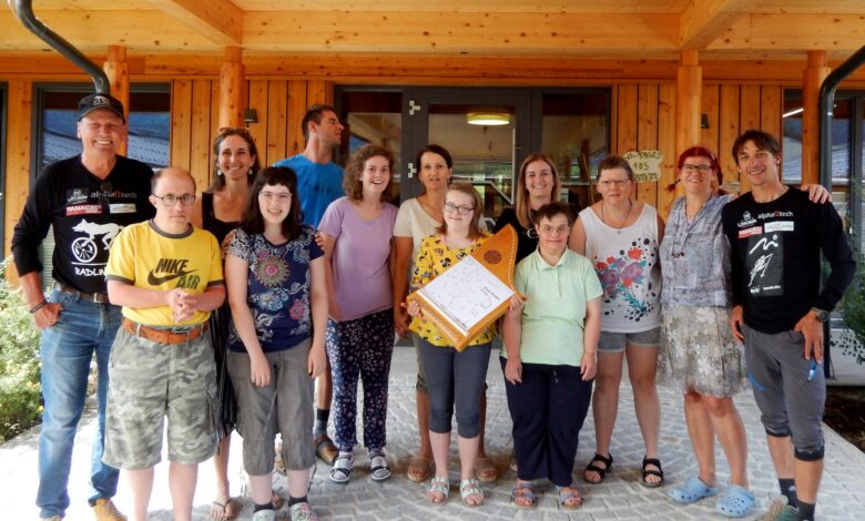 Übergabe einer Veeh-Harfe von Radlwolf und Michi Kurz an die AVS-Tageswerkstätte St. Daniel